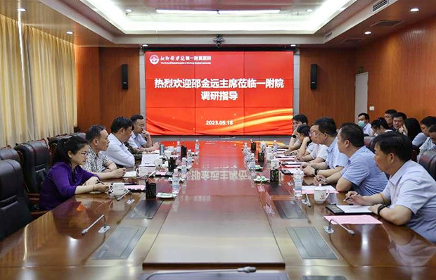 5月18日,校党委委员、工会主席邵金远一行赴第一附属医院调研指导并召开座谈会,学校校友会和临床医学学部负责人陪同调研。第一附属医院班子成员等参加座谈。