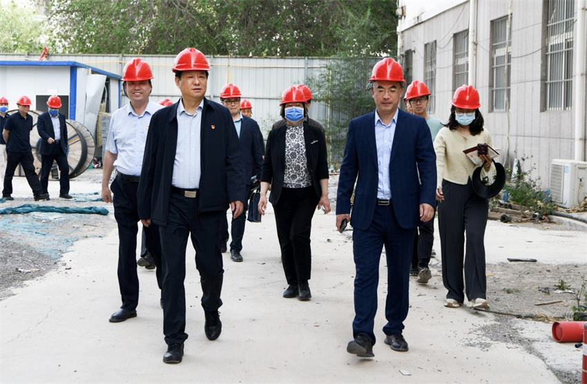 邵金远一行首先前往医院改扩建二期综合病房楼项目施工现场,调研了该项目的建设情况,详细询问了项目的建设进度、具体楼层使用分配、预计投入使用时间等。随后在医院行政楼二楼会议室与医院领导班子成员以及相关科室负责人进行了座谈。