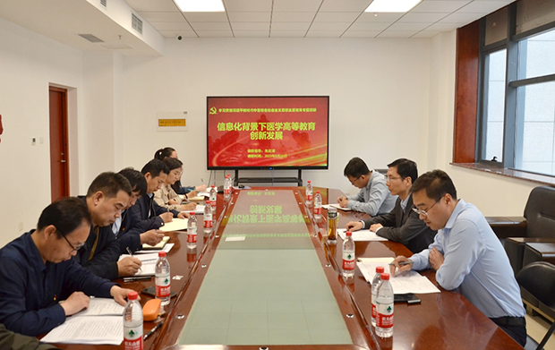 按照学校学习贯彻习近平新时代中国特色社会主义思想主题教育安排,5月19日上午,教务部党支部、发展规划部党支部及高等医学教育研究发展中心党支部在勤政楼108室联合开展了习近平新时代中国特色社会主义思想学习交流研讨会。副校长雒保军出席,并讲授了题为“新时代全面理解和贯彻全面从严治党的重大意义”的专题党课。三个党支部的干部党员参加。