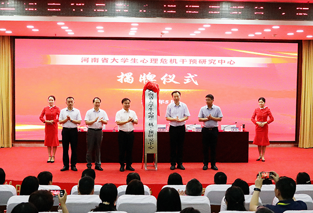 吕冰、任文杰共同为河南省大学生心理危机干预研究中心揭牌。