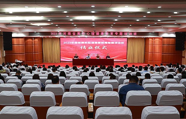 5月19日上午,2023年全省高校心理健康教育专题培训班结业仪式在我校第一报告厅举行。河南省教育厅思政处处长陈凯、副处长任龙云出席;我校大学生心理健康教育指导中心负责人及培训班全体学员参加。仪式由我校党委本科生工作部负责人主持。