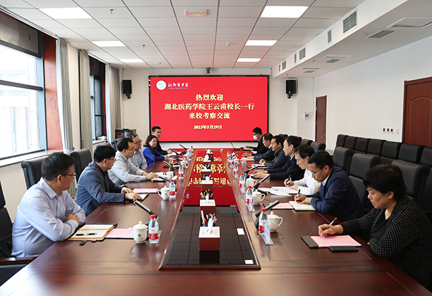 5月29日上午,湖北医药学院党委副书记、校长王云甫一行来我校考察交流,座谈会在图书信息楼716会议室举行。我校党委书记、校长任文杰出席会议,校党委委员、副校长雒保军主持会议,党政办公室、发展规划部、教务部、财务与资产管理部等部门负责人参加会议。
