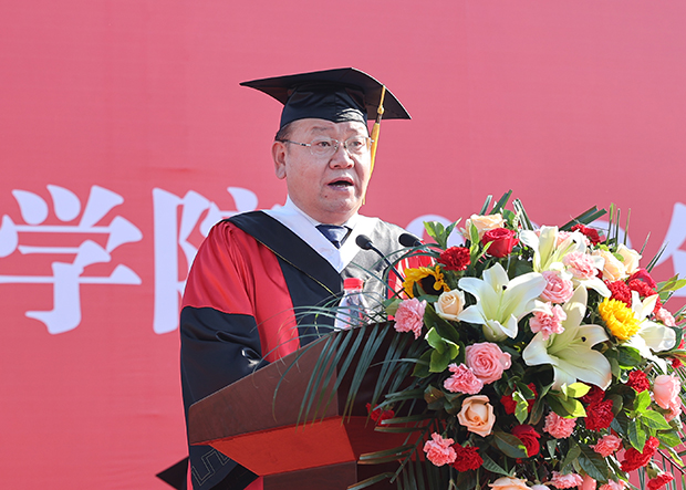 我校党委书记、校长、校学位评定委员会主席任文杰教授在讲话中向经过努力学习圆满完成学业的同学们表示祝贺,向辛勤培育同学们健康成长的老师们、家长们致以敬意。他向即将奔向远方的3141名本科毕业生和625名硕士毕业生提出了三点希望。