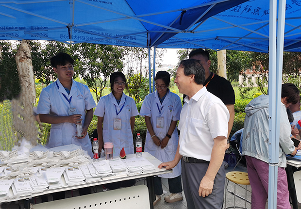 雒保军到咨询会现场亲切慰问了参加招生宣传工作的师生,对大家不畏酷暑、细心解答、热心服务的精神表示赞扬,并为大家带去了解暑降温物品。他到我校招生咨询展位前仔细询问了现场咨询情况,了解考生和家长关心的问题,认真翻阅了招生宣传材料,对我校招生宣传工作给予了充分肯定,并对今年的宣传工作提出了几点具体要求:一要加强招生宣传,认真做好招生宣传资料的发放,招生信息网的建设及信息发布、录取状态查询和网上答疑工作;二要突出学校优势,介绍学校办学特色,做好品牌专业的介绍;三要认真做好招生咨询工作,对考生及考生家长提出的问题要耐心、细致地回答,为考生填报志愿做好参谋和指导工作。