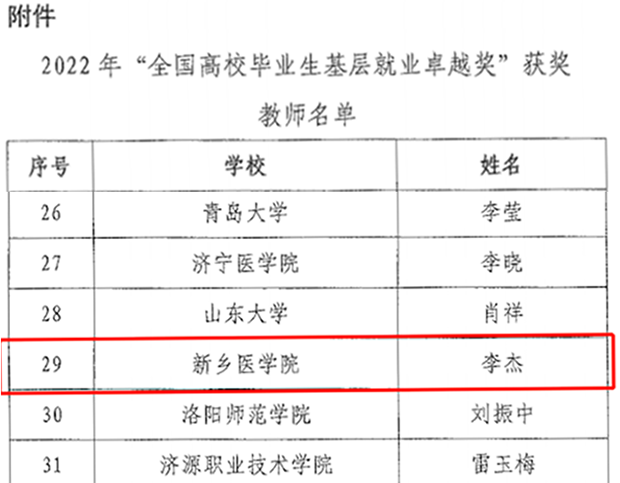 我校师生获首届全国高校毕业生基层就业卓越奖