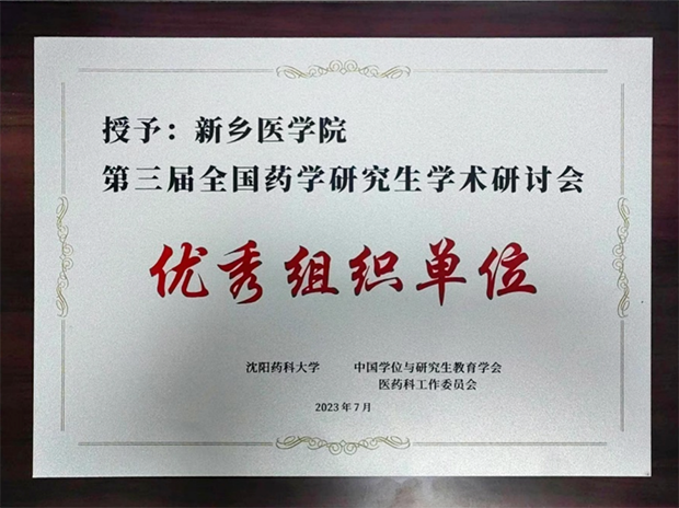 7月7日至9日,由中国学位与研究生教育学会医药科工作委员会、沈阳药科大学、辽宁省药学研究生创新与学术交流中心主办,沈阳药科大学研究生院承办的“第三届全国药学研究生学术研讨会”在沈阳药科大学举行。会议以“创新驱动 交流融合 共创药学的未来”为主题,来自全国31个省自治区128所高校1500余名专家、教师、研究生代表参会。我校7名研究生受邀参加壁报交流,1名研究生受邀参加口头报告。经最终评议,安文静、郭雅琪获优秀壁报奖,我校同沈阳药科大学、上海交通大学、郑州大学等15所高校获优秀组织单位。