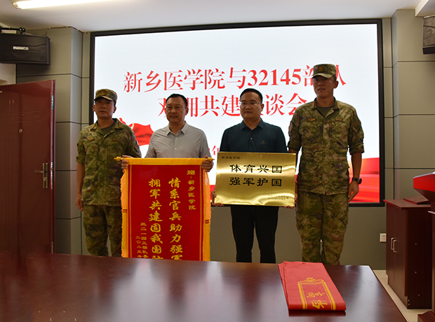 8月4日,中国人民解放军32145部队副参谋长徐亮一行来校,向学校赠送锦旗和牌匾。本科生学院、体育学院相关负责人参加座谈。