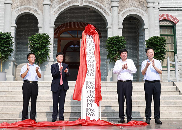 8月17日,我校第一附属医院在院史馆前举行“浙江大学医学院附属第一医院重点协作医院”挂牌仪式。浙江大学医学院附属第一医院党委书记梁廷波,新乡市委书记李卫东,河南省卫生健康委员会副主任路修德,校党委书记、校长任文杰,新乡市人民政府副市长、卫辉市委书记崔红建,校党委委员、副校长王辉,第一附属医院全体班子成员、部分医护人员代表,浙江大学医学院附属第一医院专家团队及嘉宾出席仪式。仪式由第一附属医院党委负责人主持。