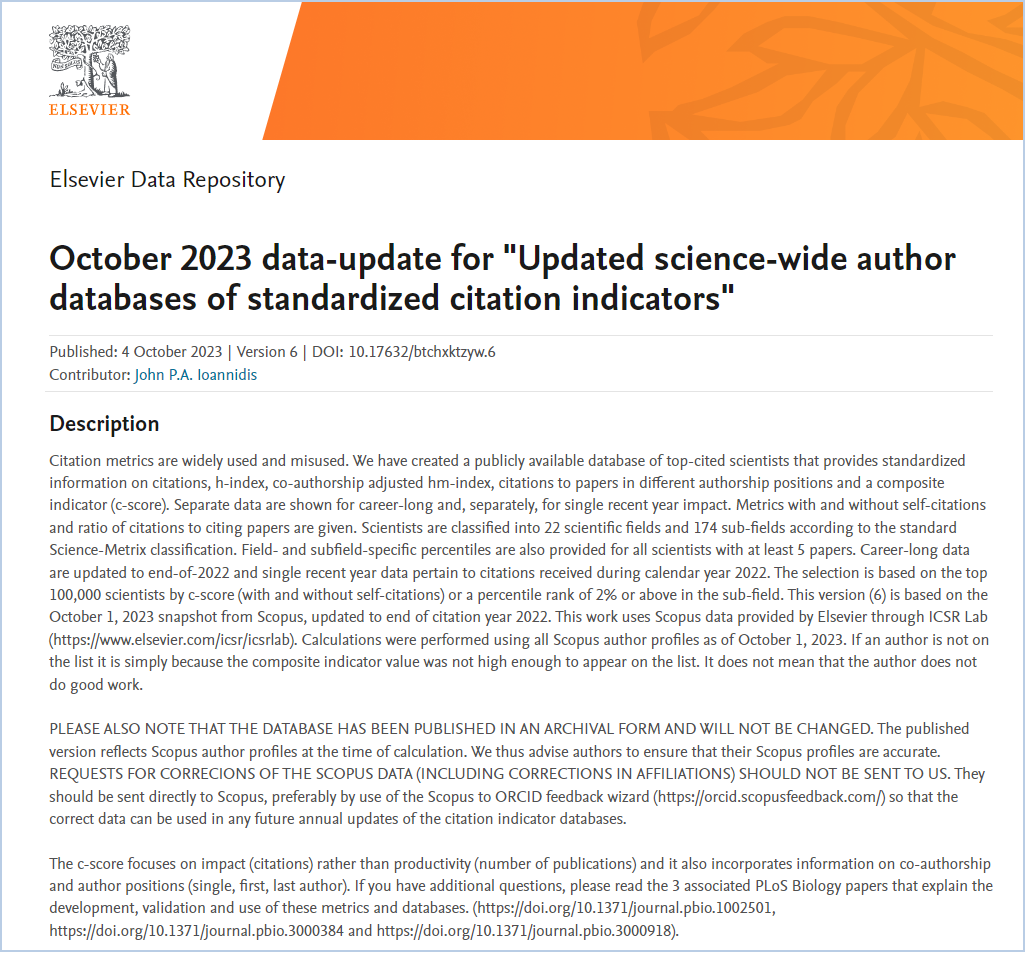我校3名学者入选2023年全球前2%顶尖科学家榜单