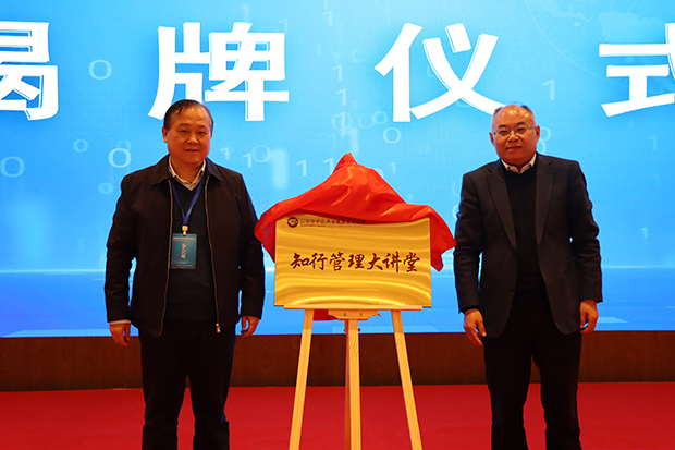开幕式上举行了“华亿在线手机版(大中国区)卫生健康管理学院”和“知行管理大讲堂”揭牌仪式。