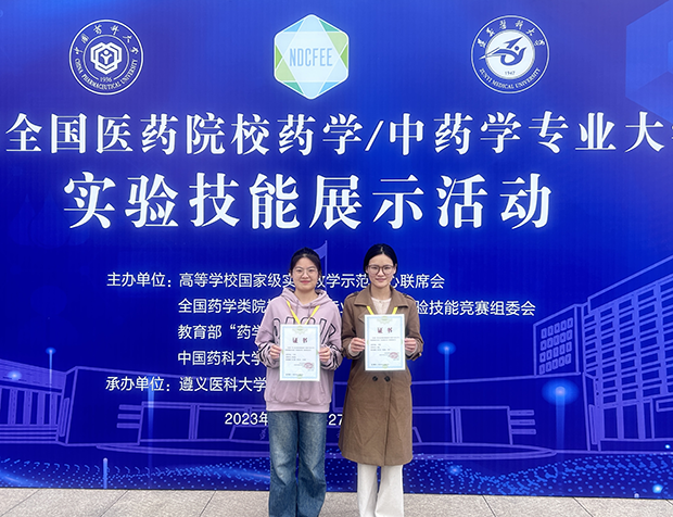 近日,由高等学校国家级实验教学示范中心联席会、全国药学类院校大学生专业技术与实验技能竞赛组委会、教育部“药学课程”虚拟教研室、中国药科大学共同举办的“第七届全国医药院校药学/中药学专业大学生实验技能展示活动”在遵义医科大学举行。我校药学院2020级临床药学专业学生张敏荣获二等奖、蒋瑶瑶荣获三等奖。