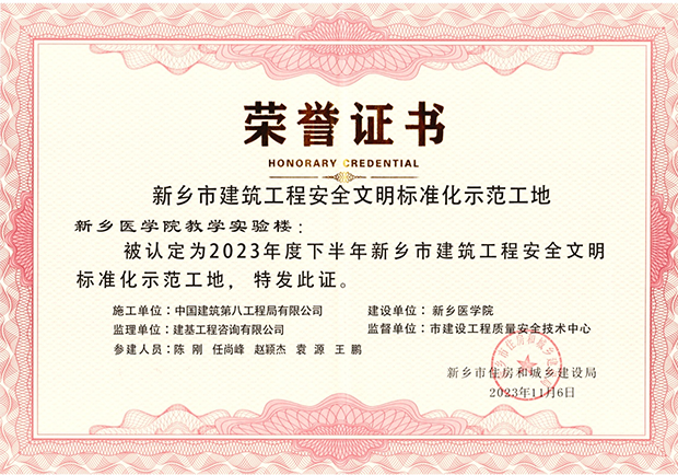 本项目今年3月29日开工以来,后勤保障部、基建处组织协调各参建单位克服场地狭小、大气管控、高温酷暑、台风暴雨、严寒暴雪等诸多困难,团结一致、精心筹划、攻坚克难,科学合理组织施工、统筹调配资源,圆满完成主体结构封顶工作,并荣获2023年度下半年新乡市建筑工程安全文明标准化示范工地。(供稿:袁源)