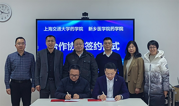 12月13日上午,我校药学院与上海交通大学药学院在求真楼六楼会议室签署合作框架协议。校党委委员、副校长王辉出席。上海交通大学药学院党委书记彭树涛、院长张翱、副院长侯爱君及相关职能部门负责人,药学院党政主要负责人参加。