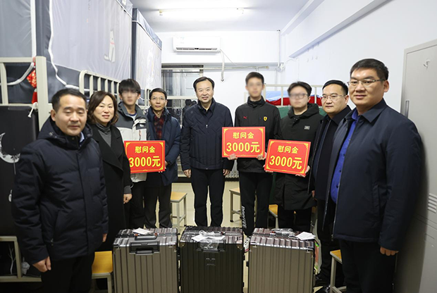 12月26日下午,校党委书记、校长任文杰,党委副书记朱武凌前往学生宿舍看望慰问甘肃地震家庭受灾学生,为他们送去学校的问候和关爱。党政办公室、本科生学院负责人,相关书院、学院负责人和学生工作负责人一同参加。
