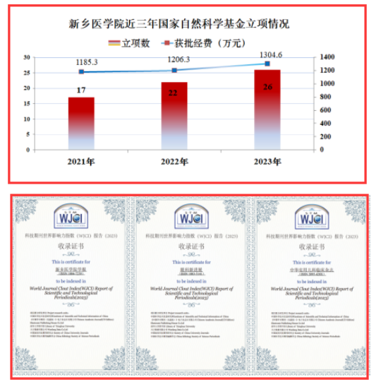 2023年度,国家自然科学基金立项实现“三提升”、社会科学基金项目立项实现“双突破”。学校共获批国家自然科学基金26项,获资助经费1145万元,其中获批区域创新发展联合基金重点项目1项,实现了国家自然科学基金年度立项数量、资助经费及总体质量的“三提升”;获批国家社会科学基金3项,实现了重点项目和后期资助项目两个“零突破”。
