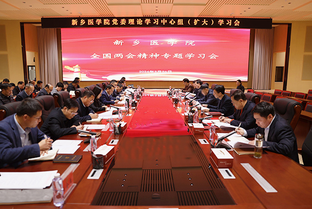 3月26日下午,学校党委理论学习中心组在图书信息楼二楼会议室进行2024年全国两会精神专题学习。校党委理论学习中心组成员及学校中层正职参加学习会议。会议由校党委书记、校长任文杰主持。