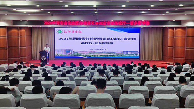 5月17日,河南省卫生健康委员会“住培”政策宣讲团到我校开展“住培”政策宣讲。河南省卫生健康委员会科教处副处长刘淑娅,校党委委员、副校长林俊堂出席。宣讲会由教务部负责人主持。我校2024届1200余名医学生通过线上线下参会聆听政策宣讲。