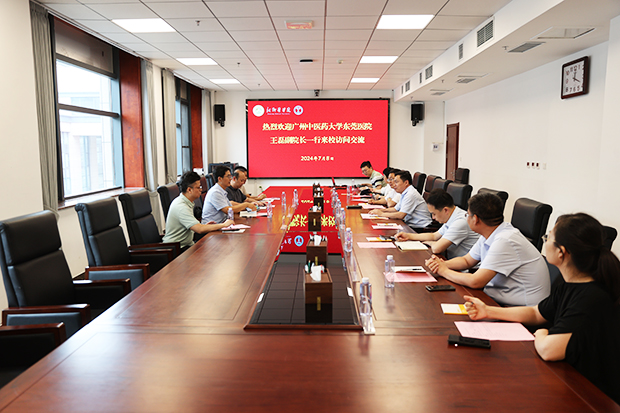 7月8日上午,广州中医药大学东莞医院副院长王磊一行4人来校访问交流。座谈会在图书信息楼南楼716会议室举行。校党委委员、副校长王天云出席。临床医学学部、教务部及医学影像学院相关负责人参加。