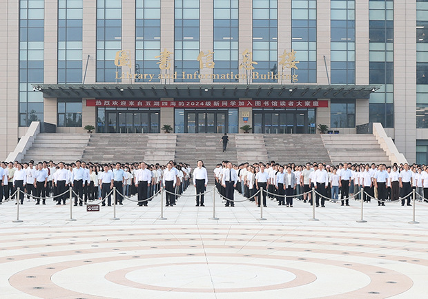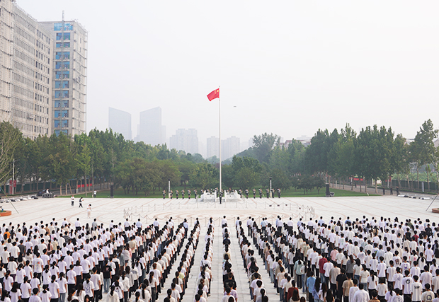 9月9日,新学期升国旗仪式在北校区图书信息楼北广场举行。全体在校校领导出席仪式。相关职能部门负责同志,各基层党组织书记、副书记,各书院、学院团委书记、辅导员及学生代表1200余人参加。