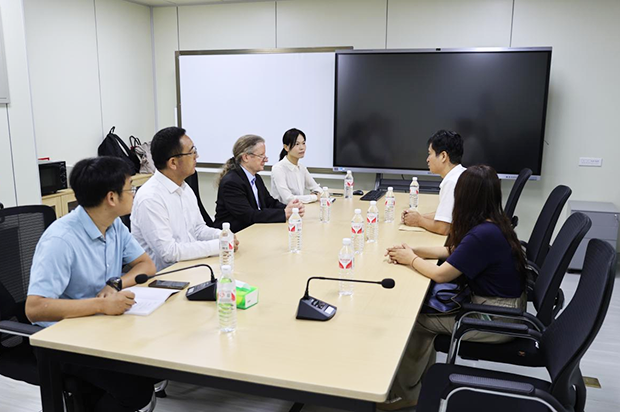 9月14日上午,苏绍彬来校看望外籍院士伯纳德·麦利森教授。校党委组织部负责人和有关同志参加活动。