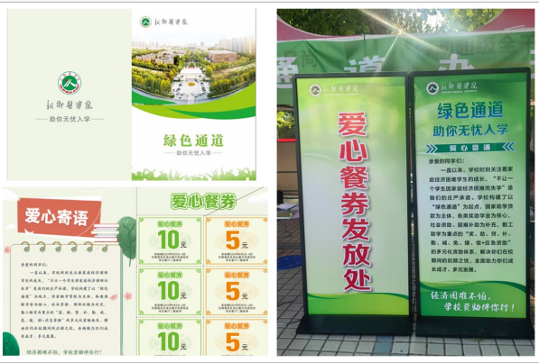 入学时,初遇新医暖心服务。学校在南校区、北校区、西校区分别设置“绿色通道 资助政策咨询台”服务站,为新生们铺设一条暖心的入学之路。设置爱心餐券发放处,为1162名申请“绿色通道”的学生发放爱心餐券,让学生和家长可以在学校餐厅体验“新医第一餐”,增强学生的归属感和幸福感。同时,服务站两侧资助政策宣传展板排列整齐,内容详实丰富,吸引学生及家长驻足观看。工作人员耐心、热情地为新生解答各种入学疑问,认真收取生源地回执,细心指导相关表格填写,详细介绍学生资助政策体系,特别是校园助学贷款政策,为有需要的学生和家长提供全方位资助咨询服务,不仅让家庭经济困难学生初入校门就感受到来自学校的温暖,同时让学生对即将开始的大学生活充满信心。