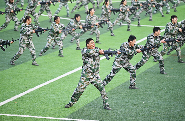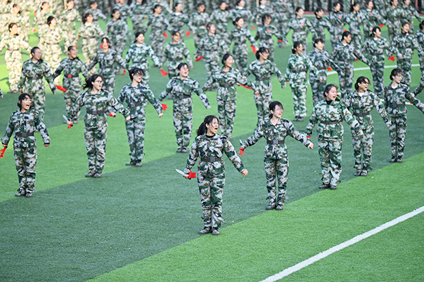 随着指挥员下达“军训汇操开始!”的口令,由各书院、学院学生组成的16支分列式方队,迈着铿锵有力的步伐,英姿飒爽、斗志昂扬,昂首阔步走过主席台,以崭新的精神风貌和高昂的士气,充分展示了2024级新生经过军训历练后的成长与蜕变。随后,摆字方阵、刺杀操方阵、匕首操方阵、军体拳方阵、棍术方阵、战术方阵逐一进行了特色军事科目演练,全面展现了14天的军事训练成果。