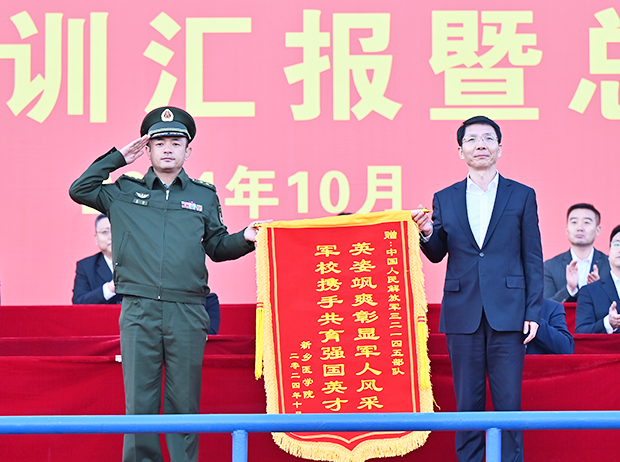 林俊堂在总结中充分肯定了此次军训工作成果,向担任此次军训任务的51名部队官兵表示衷心的感谢和诚挚的敬意,向军训期间对学生悉心呵护的老师们表示亲切的问候,向圆满完成此次军事训练任务的2024级学生表示热烈的祝贺,并向同学们提出三点希望。一是要胸怀强国之志,在时代浪潮中奋勇前行。作为新时代青年,一定要胸怀强国之志,把个人的理想抱负融入到国家和民族的事业中,以实现中华民族伟大复兴为己任,在时代的浪潮中拼搏进取、奋勇前进,应心怀强国之心,坚定强国信念,以吾辈之青春,铸青春之中国。二是要苦练强国之技,在深研细学中精业强能。作为一名医学生,肩负着守护人民健康、推动国家医疗进步的重要使命,要想担负起新的时代重任,就必须要勤学专业技能,练就精湛医术,时刻牢记“明德博学,至爱致用”的新医校训,笔耕不辍、精医济世,为中国式现代化医疗卫生事业发展贡献自己的智慧和力量。三是要永葆报国之心,在勇担重任中甘于奉献。面对当前世界变革的机遇与挑战,要始终保持孜孜不倦的求学精神,秉承一颗矢志强国的报国之心,将自己的扎实本领投身到国家医疗建设和社会医疗服务中去,甘于奉献、勇于担当,以我校优秀杰出人才为榜样,自觉投身到为国奉献的时代浪潮中去,投身到人类医学的研究和发展之中,努力成长为可堪大用的强国先锋。