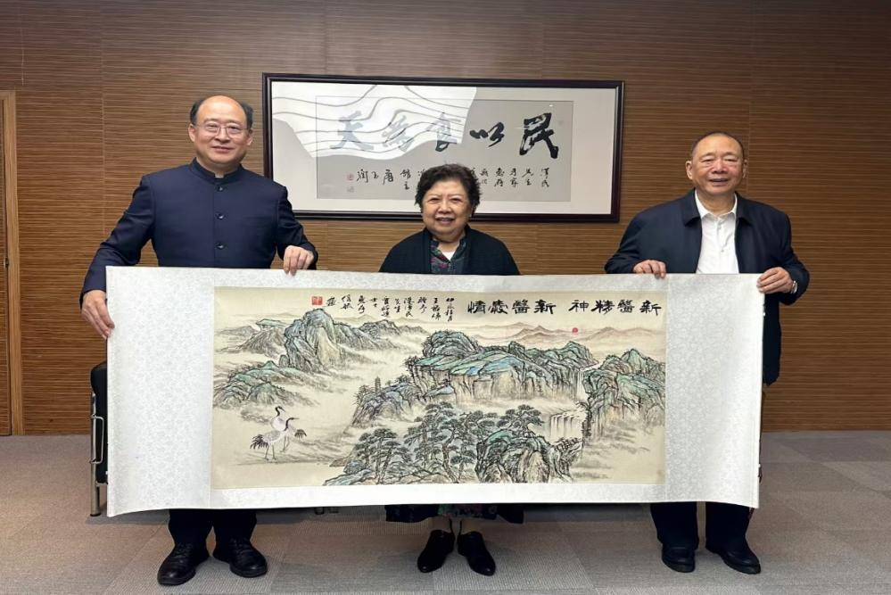 王福俤向两位杰出校友送上题有“新医精神 新医爱情”的国画表示祝福。陈泽民寄语新医学子,“一个人在幼年、青年时代受到的磨炼,是他一生中最宝贵的财富。”他说:“小时候勤工俭学和青年时的艰苦劳动,造就了我不怕吃苦的性格,并且让我深深地认识到:只有通过劳动,才能创造财富。”他希望新医学子能够珍惜在校学习的每一分每一秒,努力学习专业知识,养成博学善用、勇于创新的习惯,培养自己的综合素质。同时,也要勇于追求卓越,敢于挑战自我,为未来的职业生涯奠定坚实的基础,用奋斗书写属于自己的精彩篇章。