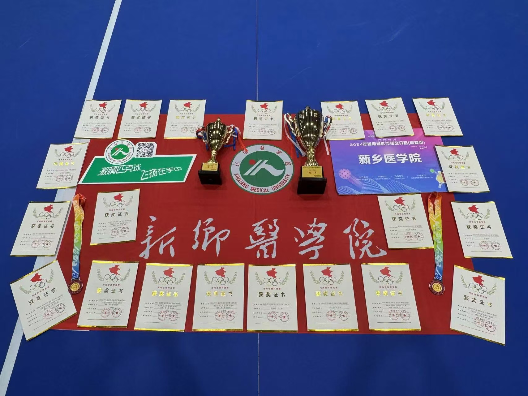 11月16日至17日,由河南省学生体育总会主办的2024年河南省匹克球公开赛(高校组)在郑州师范学院举行。共有来自全省24所高校近200名选手参加。我校体育学院教师胡志斌、穆鹏带领校匹克球队8名学生运动员参加比赛并取得优异成绩。团体赛获得女子团体冠军,男子团体季军。单项赛中男双选手获得亚军,混双获得亚军。参赛队员分别是来自峻极书院麻醉学专业学生张睿宸、王佳艺,药学院学生付祥佳、张甜畅,护理学院学生王文博,卫生健康管理学院学生黄钰祥,第三临床学院学生李孟涛、张彦生。