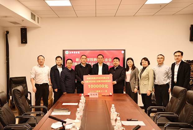 11月29日,我校在图书信息楼北楼7楼会议室举行河南省民健齿科材料有限公司捐赠仪式。校党委委员、副校长林俊堂,河南省民健齿科材料有限公司总经理胡峰铭、企业负责人张鹤出席。校友总会办公室、校地合作办公室、药学院、口腔医学院等相关单位负责人及教师代表参加捐赠仪式。