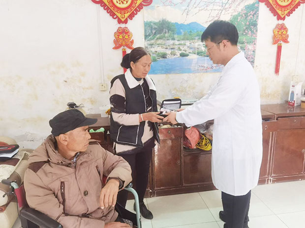 12月12日,学校第一附属医院专家团队近两个月来第三次走进延津县任庄村村民任贺贤家里,登门回访罹患突发性脑梗导致下肢感知觉障碍症的任贺贤,了解他的身体康复情况,并送去下一阶段康复指导方案、协助办理慢病卡的病历复印件等资料。