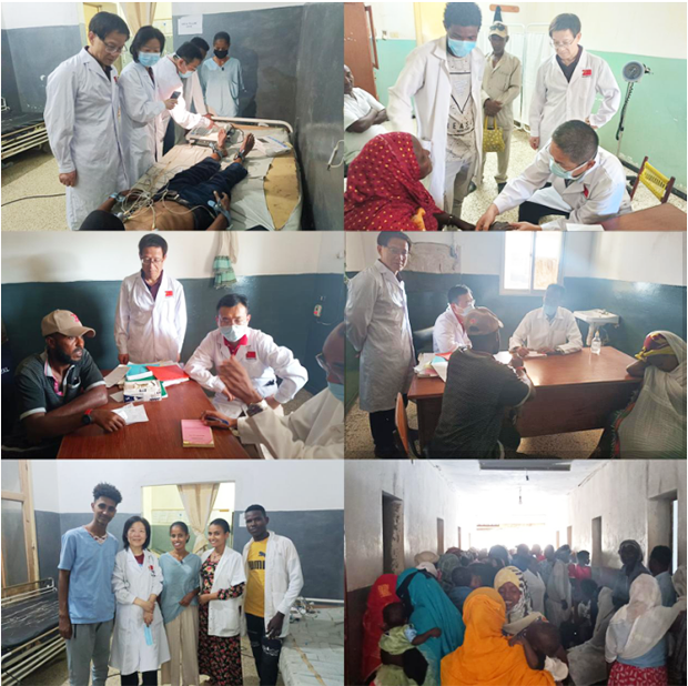 捐赠仪式结束后,医疗队各专业队员分别前往不同科室进行援助,开展巡诊工作。尤其是在眼科和骨科,患者的数量众多,技术设备较为欠缺,急需外部援助。在队员们的专业诊疗下,许多患者得到了及时有效的治疗。除了为当地患者提供医疗援助外,第17批援厄医疗队还积极服务在厄的中国企业员工。