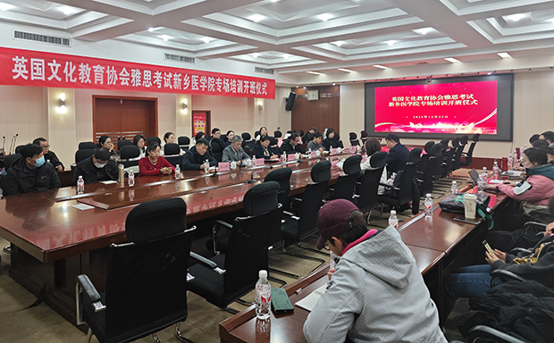 郭凯英代表学校对英国文化教育协会的到来表示欢迎。她指出,本次雅思专场培训在我校落地是对学校“十四五”规划中国际化教育理念的积极贯彻,也是对刚刚结束的本科教育教学审核评估提出的“拓展师生国际视野”这一建议的落实举措。她对培训开展提出了三点要求。一是要强化思想认识,落实行动自觉,希望参培人员珍惜培训机会,努力提升国际化能力和水平。二是要科学合理安排,务求培训实效,对培训的内容、方法、进度等进行全面系统的规划和设计,严格把控培训质量。三是要强化合作融合,促进共同发展,以更加开放的姿态、更加务实的作风、更加有效的措施,促进培训内容与国际教育理念、方法的融合,助力学校创建现代化医科大学。