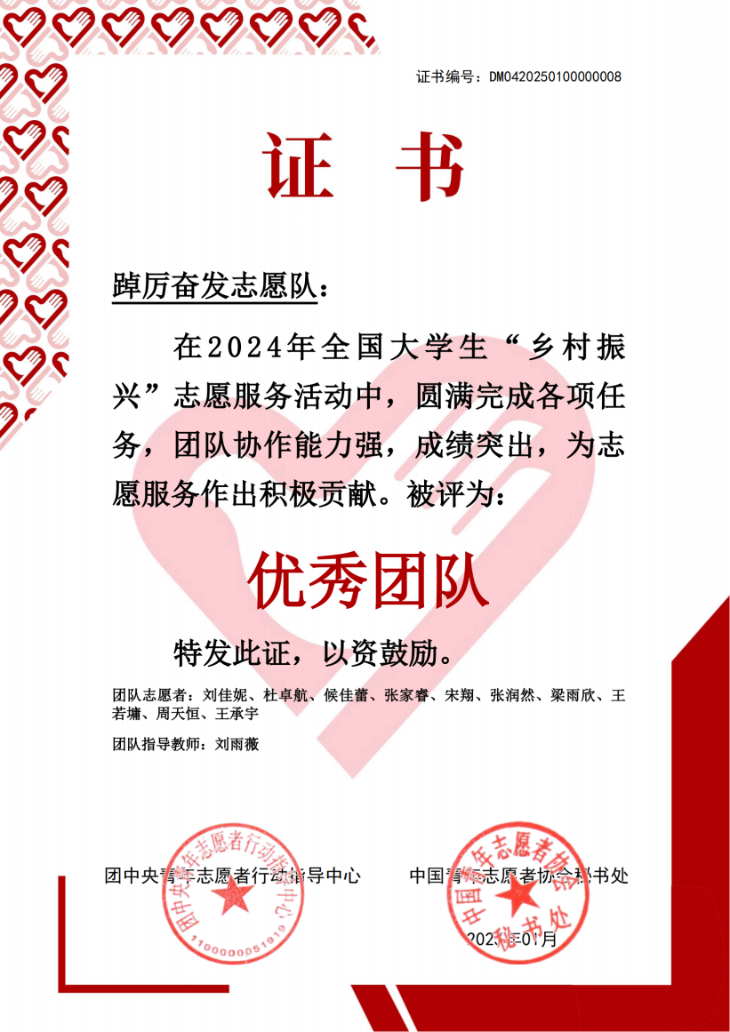 我校“踔厉奋发”志愿服务队荣获全国大学生乡村振兴志愿服务“优秀团队”
