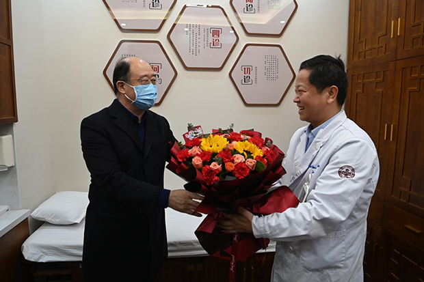 日月开新元,天地又一春。2月5日,即春节假期结束后的首个工作日,校长王福俤率队看望慰问第一、第二、第三附属医院教职工,向奋战在临床医疗、科学研究和教育教学一线的工作人员致以新春的问候和美好的祝愿。校党委委员、副校长雒保军、林俊堂,各相关职能部门负责人随同慰问。