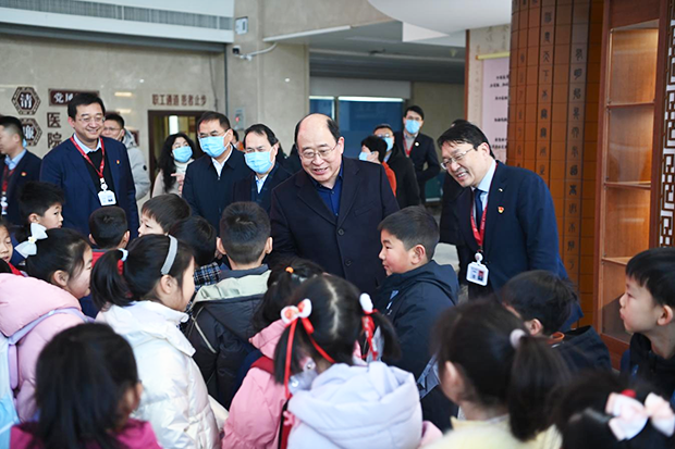 在第一附属医院,王福俤一行为正在接诊的国医堂知名专家送上鲜花与慰问品。在与专家的交流中,他特别强调要始终以患者为中心,坚持守正创新,传承医学精华;在9号楼中药文化馆,王福俤与正在此参观学习中医文化的医院职工子女寒假托管班的138名小朋友展开趣味互动,为孩子们送去新年的祝福,勉励大家努力成为“大医生”;在肿瘤内科病区及生命科学研究中心,王福俤详细了解了患者救治情况、特色诊疗技术以及实验室的发展现状,对医院在医疗和科研方面取得的成绩给予高度评价;在参观临床技能培训中心时,王福俤一行观摩了学生们的操作演练,并寄语师生:“医学教育关乎未来医疗服务的品质,期望大家能够磨炼出精湛的专业技能,更好地造福患者。”