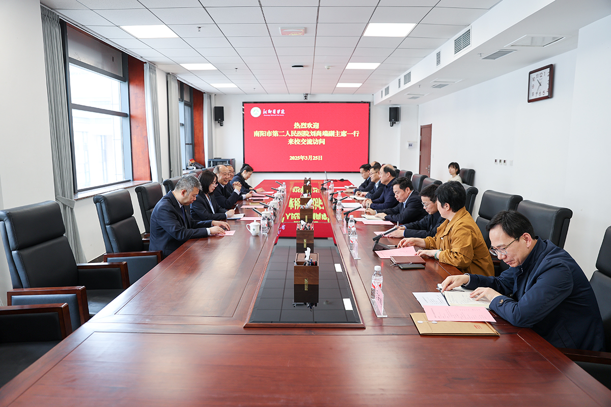 3月25日,南阳市第二人民医院负责人、南阳市宛城区政协副主席刘尚端一行五人来校访问交流,商谈深度战略合作事宜。座谈会在图书信息南楼716举行。校长王福俤会见客人。党委委员、副校长王天云、姬广军出席会议。各相关职能部门负责人参加。