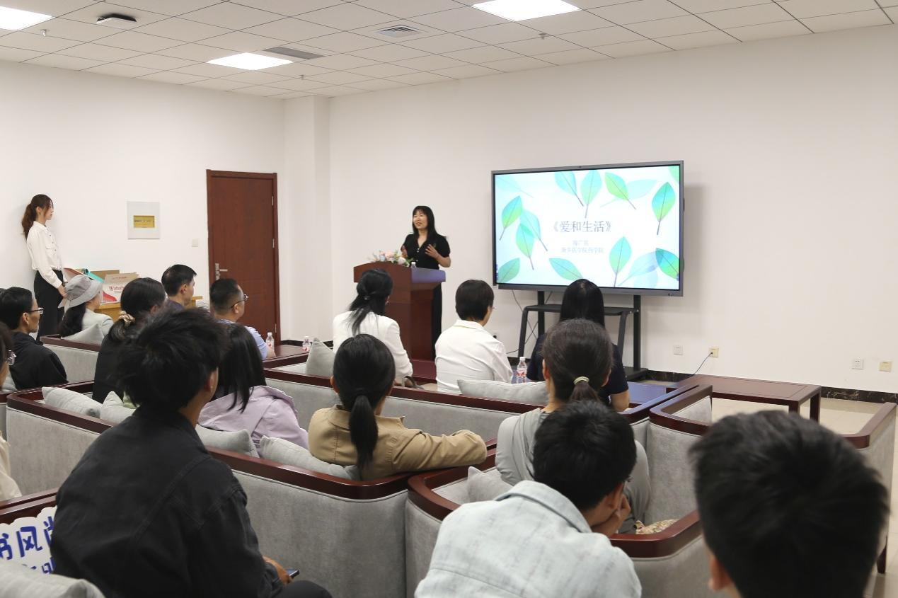 “最是书香能致远。”活动伊始,师生共同观看《习近平总书记谈读书》相关视频。药学院教师海广范推荐并分享了《爱和生活》一书,她围绕作者和书籍简介、内容简介、精彩片段、阅读感悟等四个方面梳理了全书内容,讲述了书籍作者如何以“爱”为处方、告诉人们爱的功能与强大力量,怎样用爱去平息各种纠纷,平息不良情绪,使自己有重新投入生活的力量、勇气和信心,用爱与智慧过好一生。海老师以生动的语言和真挚的情感,结合自己的阅读爱好和读书对她工作和生活的重要影响和意义,娓娓道来,生动形象地为在场的师生带来了一场探索爱与人生的心灵分享之旅。