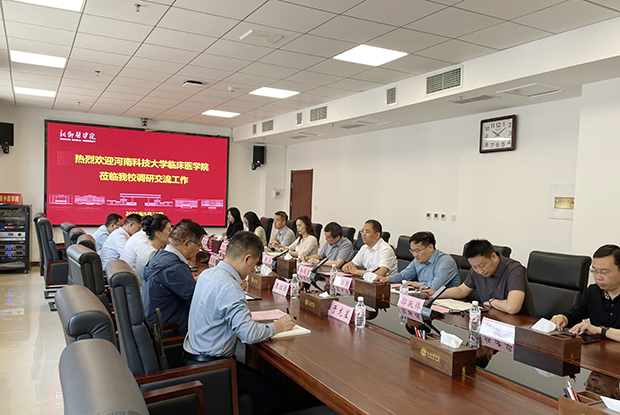 5月26日上午,河南科技大学临床医学院一行6人来校考察交流。座谈会在图书信息楼716会议室召开。校党委委员、副校长林俊堂出席。本科生学院、教务部、第四临床学院相关负责人参加。