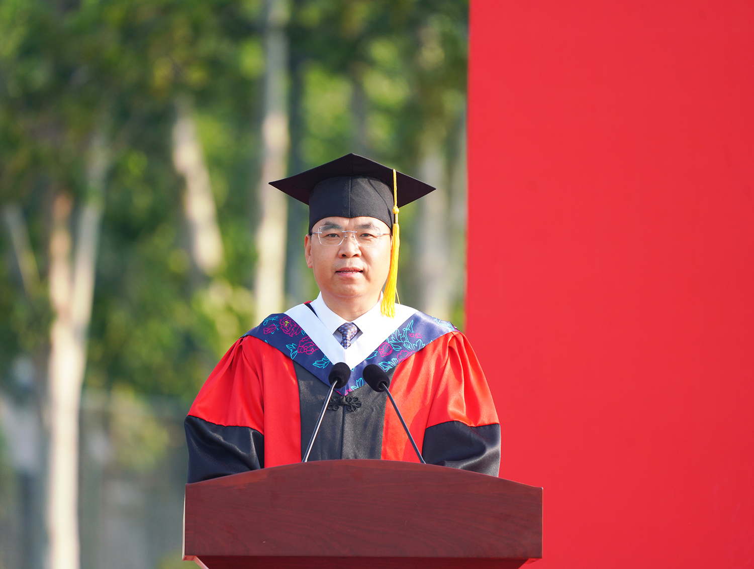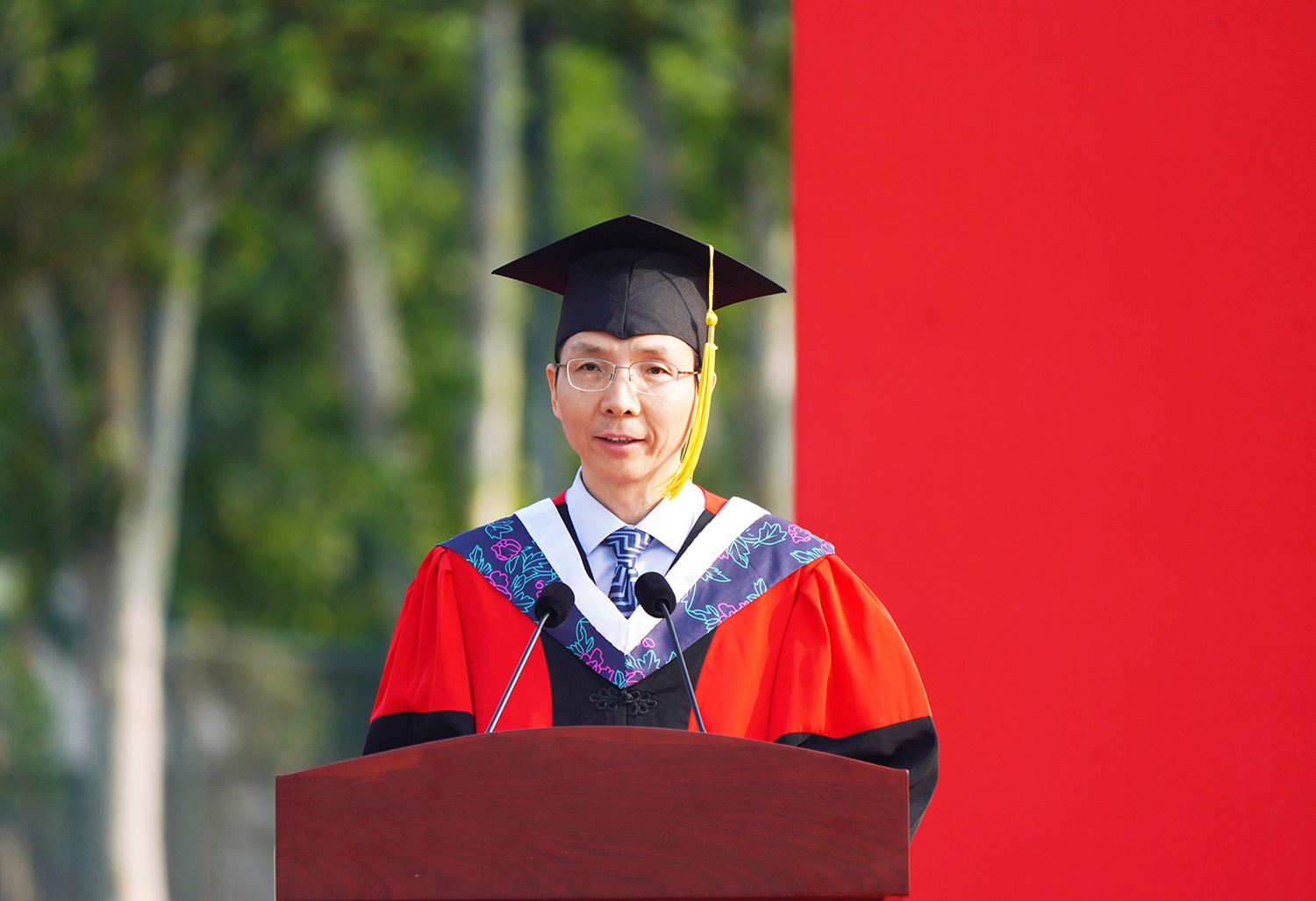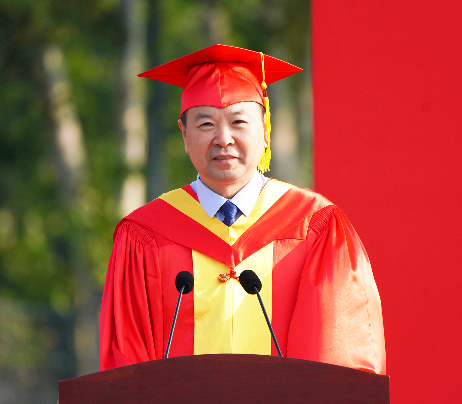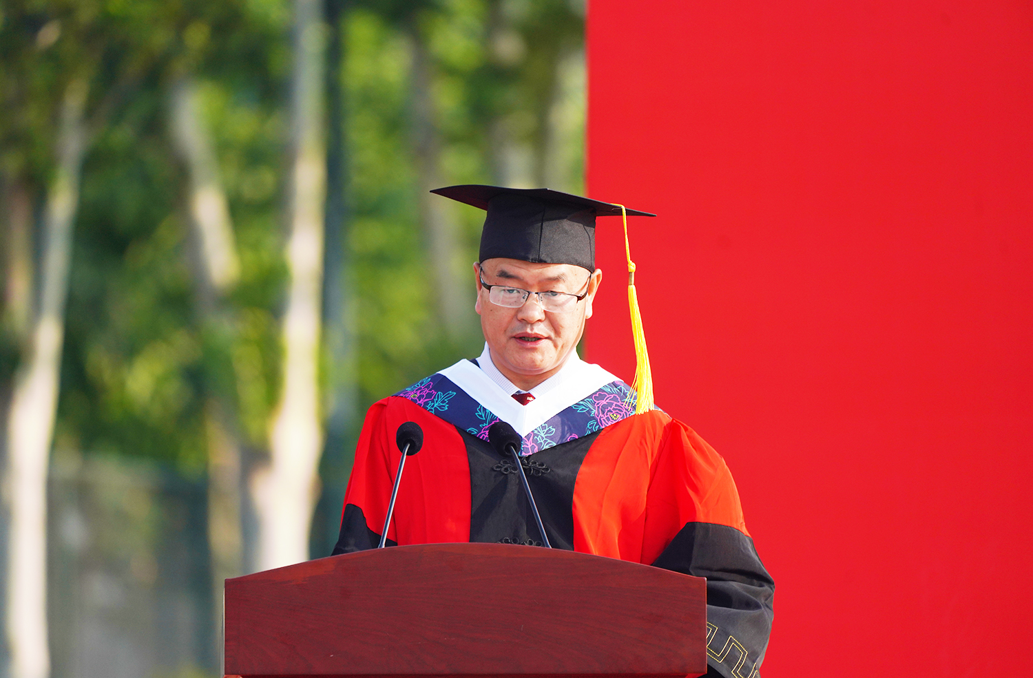 校长、校学位评定委员会主席王福俤教授在讲话中向圆满完成学业的全体毕业生表示祝贺,向传道授业、含辛茹苦的全体教职员工、家长们致以敬意和感谢,向即将走出校园、迈向人生新阶段的学子们提出殷切期望。