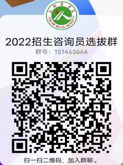 报名表发送后请加入2022年招生咨询员选拔通知QQ群。可搜索群号进入(群号:151463664),也可以扫描下方二维码完成加群。