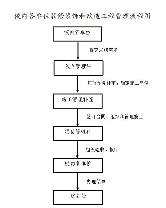二、项目管理科依据申报部门(单位)合理需求,组织前期的调研、设计、制图、预算,按程序报预审、集中采购确定施工单位,交接给对应的施工管理科室。