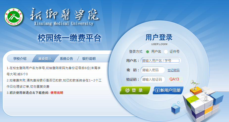 提醒:5月28日至5月31日期间缴费系统更新维护,无法登录。