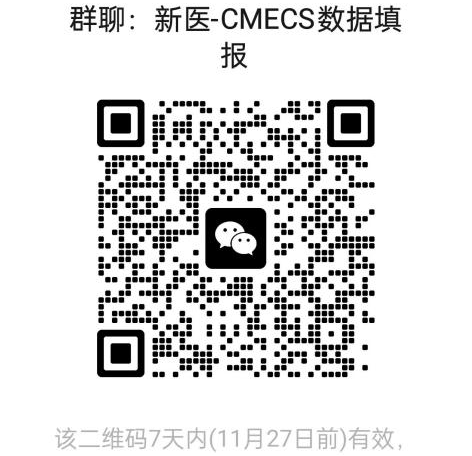 (三)为保证统计工作顺利进行,请各单位专人负责数据填报人员于11月20日前微信扫描二维码加入“CMECS数据填报”微信群,工作结束后该群解散。