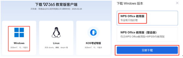 打开链接:https://365.wps.cn/edu/download,根据电脑系统选择对应的入口,下载“WPS office教育版”