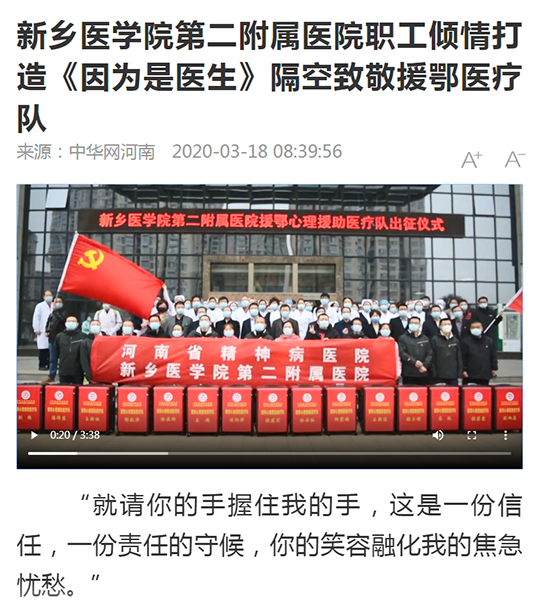 华亿在线手机版(大中国区)第二附属医院职工倾情打造《因为是医生》隔空致敬援鄂医疗队