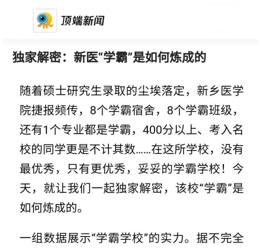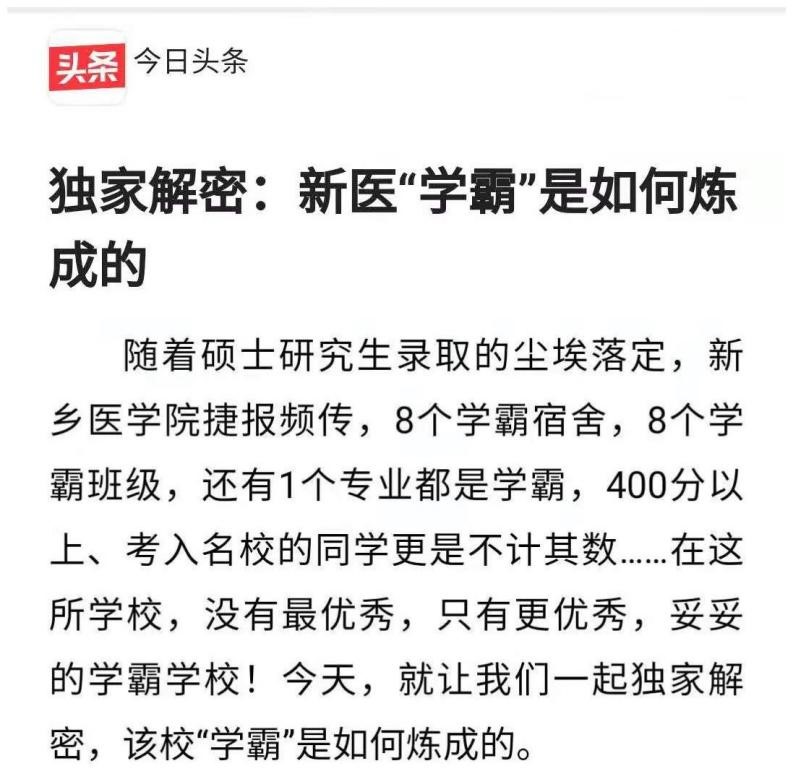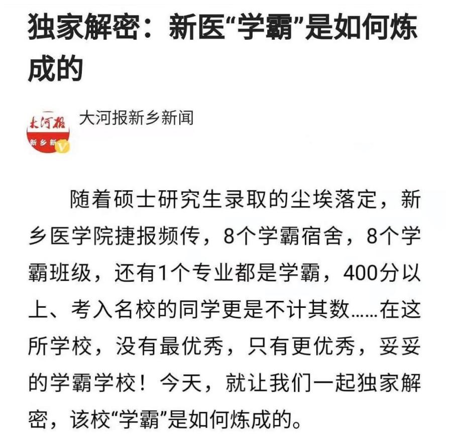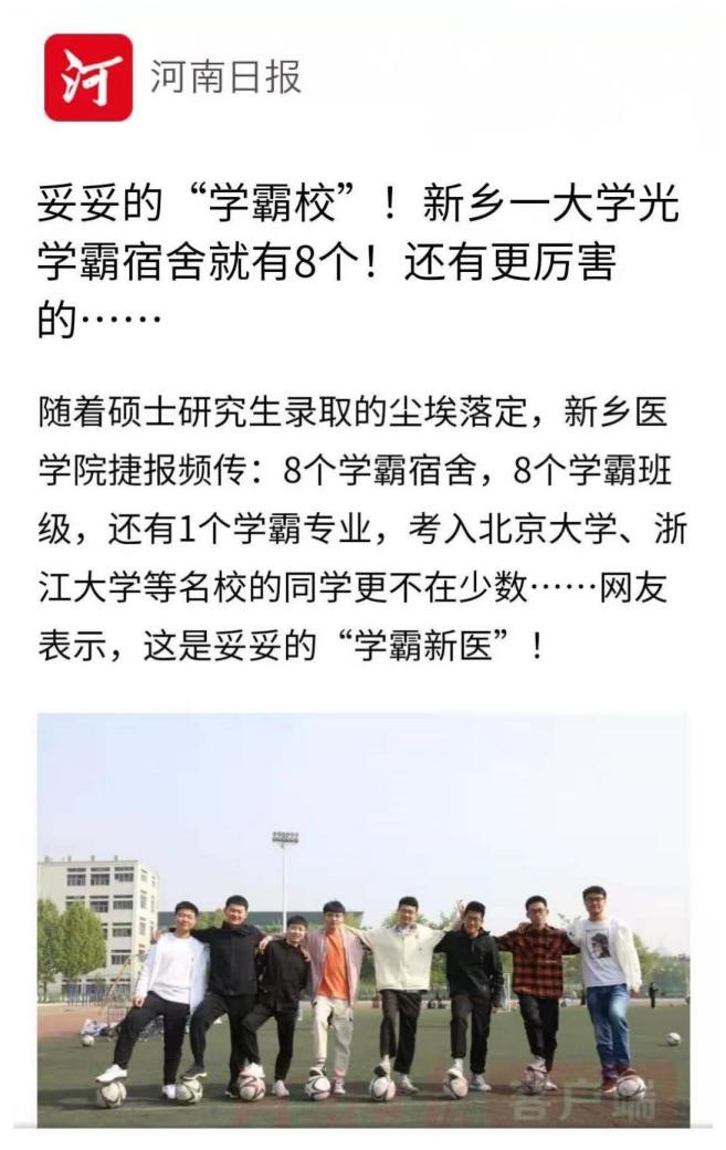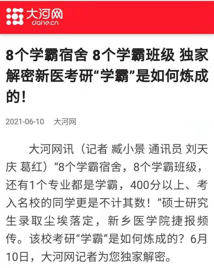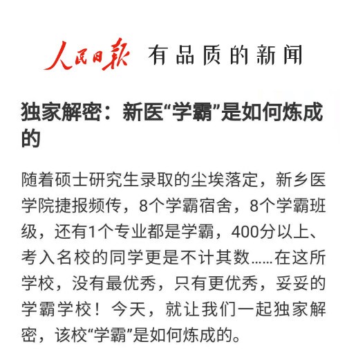我校“学霸宿舍”“学霸班级”等扎堆出现,受到了人民日报客户端、河南日报客户端、大河网、顶端新闻、大河报新乡新闻、新浪网、今日头条等媒体报道。