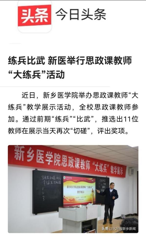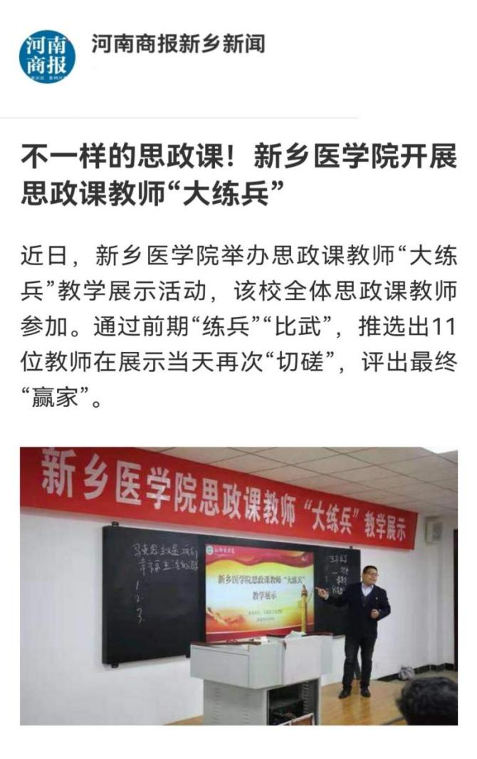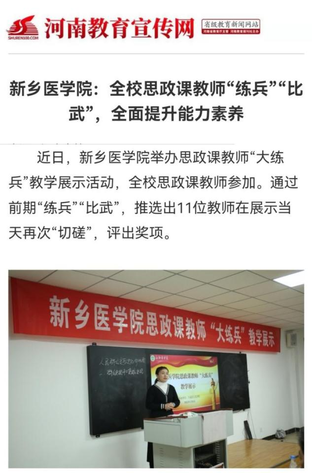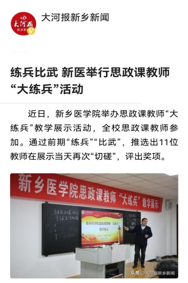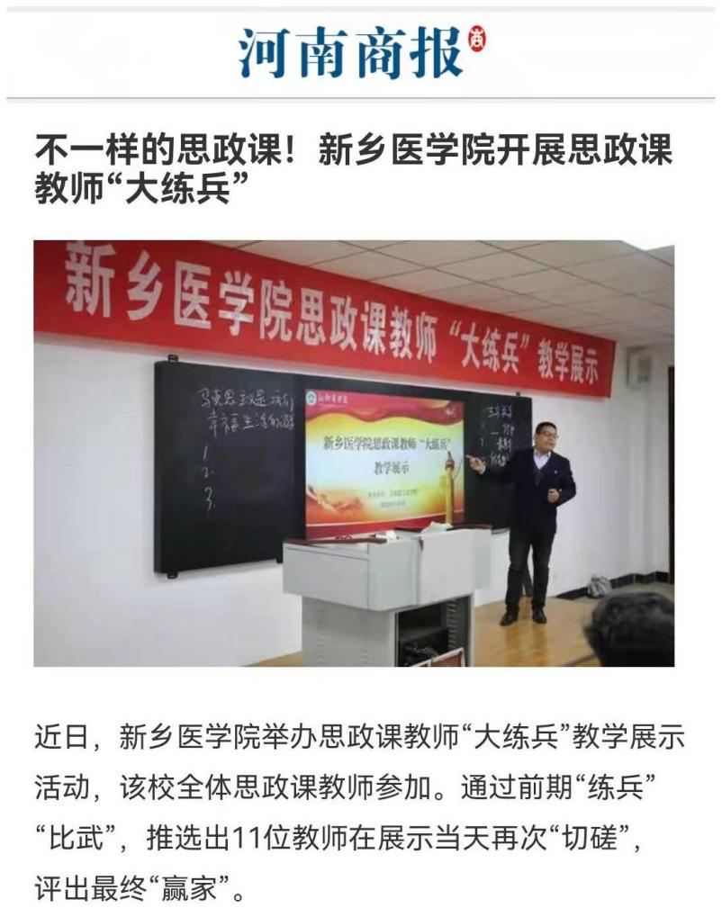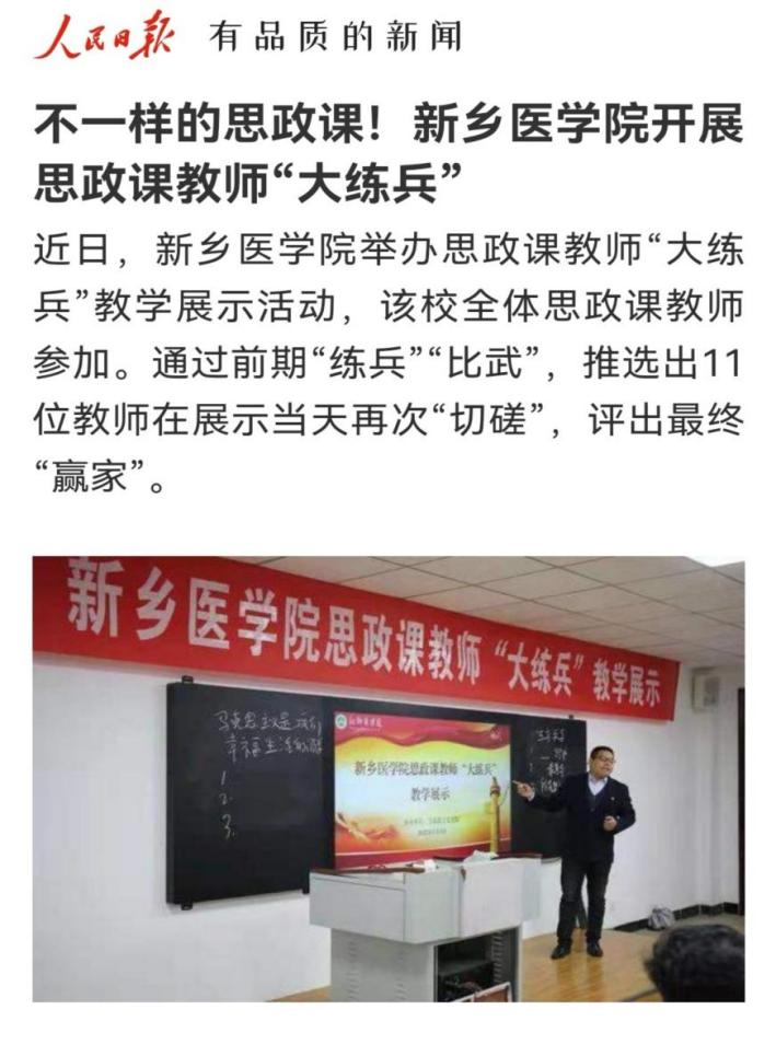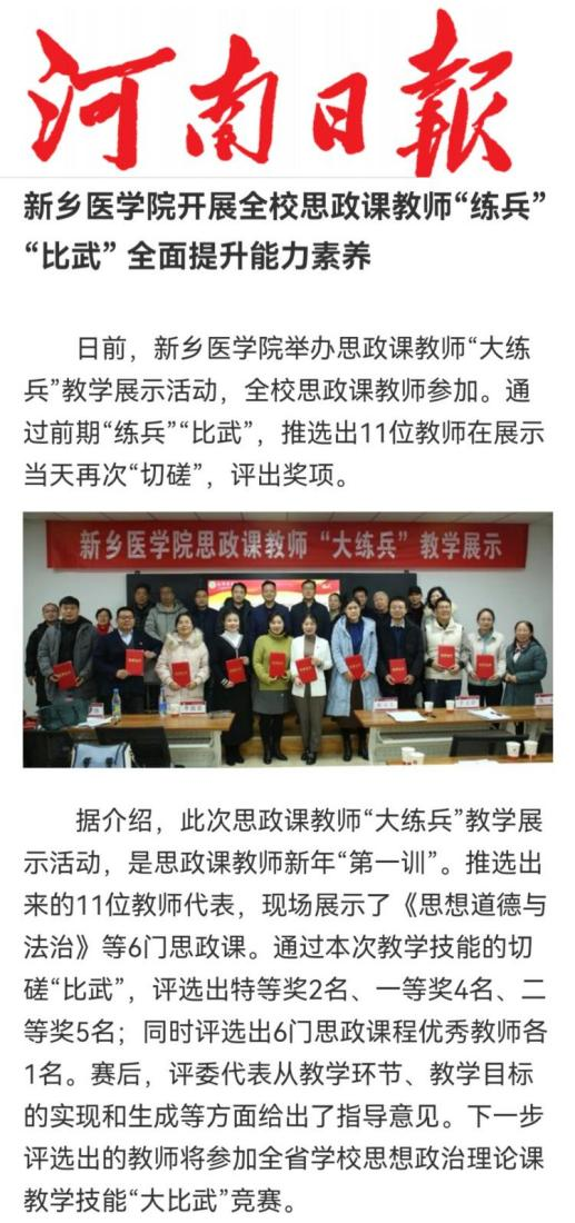 日前,我校举办思政课教师“大练兵”教学展示活动,11位教师参加当日活动并评选出奖项。多家媒体报道。(供稿:刘天庆 李春晓)