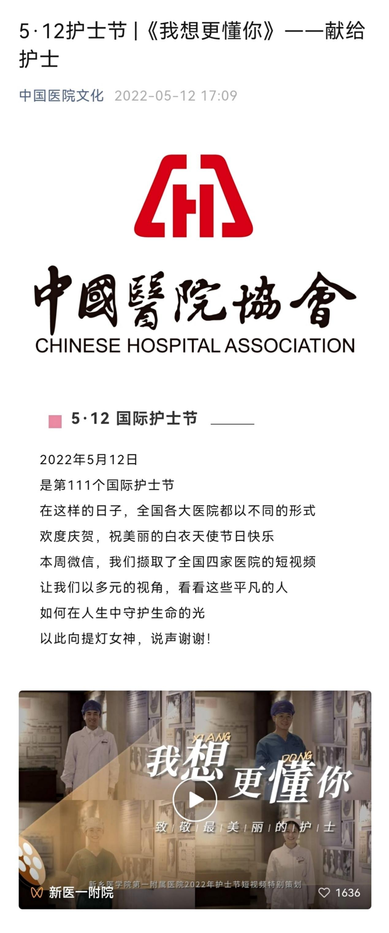 学习强国、健康中国、央视频客户端、中国医院文化、医药卫生报等多家媒体进行同步推送。