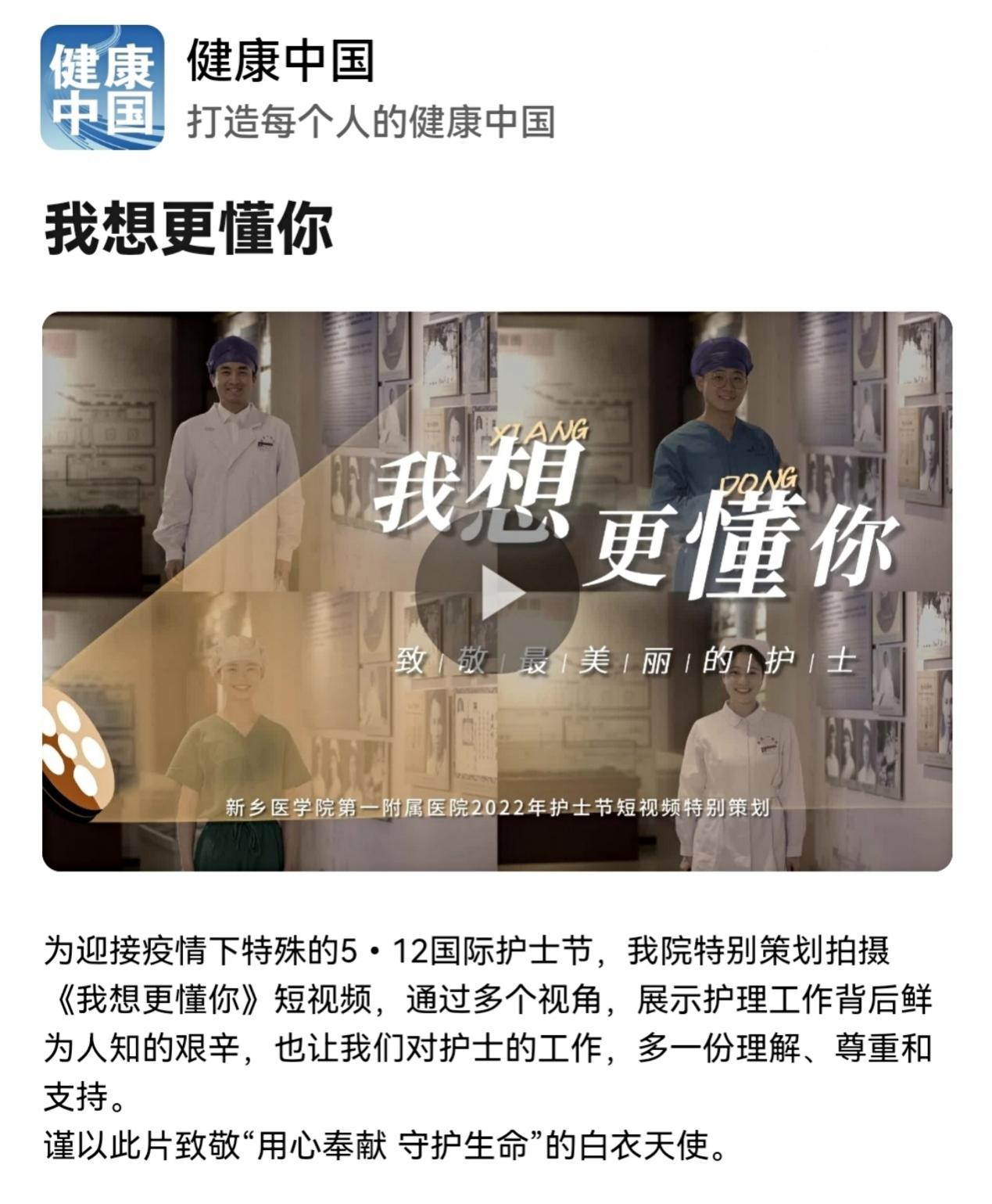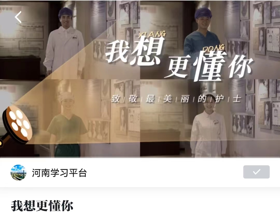 为迎接疫情下特殊的5•12国际护士节,我校第一附属医院以副院长郭明好教授2015年所作《护士赋》为蓝本,特别策划拍摄《我想更懂你》短视频,通过多个视角,展示护理工作背后鲜为人知的艰辛,致敬“用心奉献 守护生命”的白衣天使。